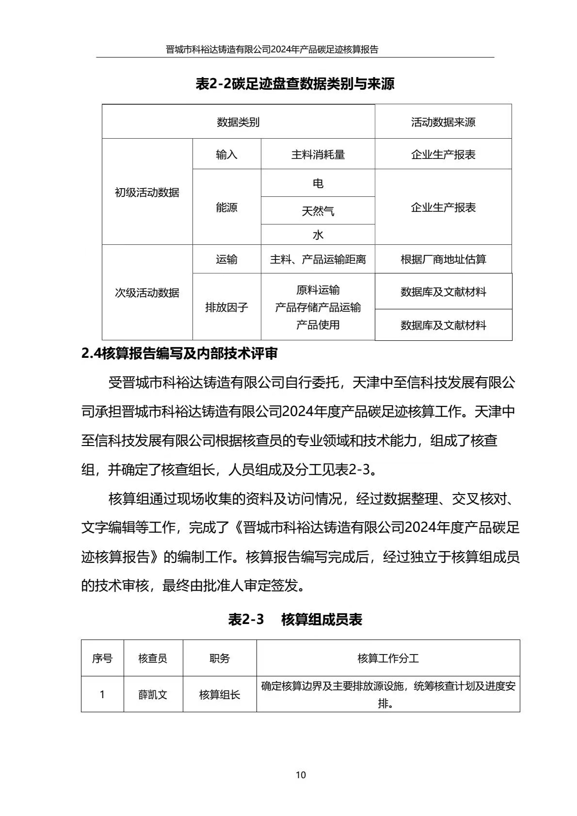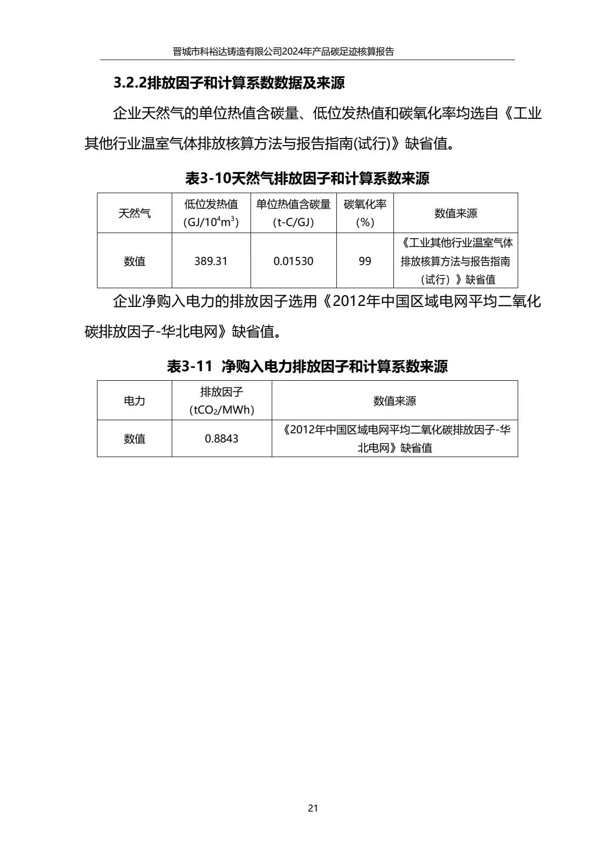 晉城市科裕達鑄造有限公司碳足跡報告